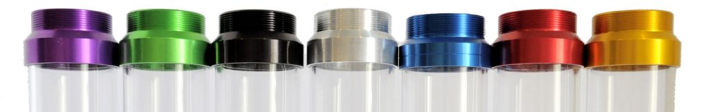 Los collares/cuellos están construídos con aluminio anodizado y disponibles en variados colores, perfectos para cuando un segundo método de identificación se requiera (tipo de lubricante, aplicación o sector).