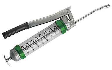 Ahora puedes eliminar la posibilidad de utilizar la grasa errónea con una engrasadora manual con un tubo transparente irrompible de policarbonato de alta tecnología.
