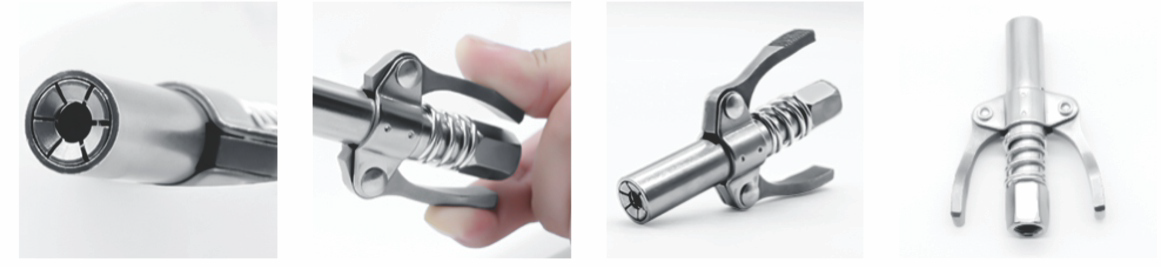 Ampliamente compatible con cualquier engrasadora manual, neumática o a batería, que posee una rosca estándar de 1/8NPT y puede usarse con graseras M6/M8/M10/M12/M14. Simplemente reemplace el acople de su engrasadora por el XGC-101 Quick Release Heavy Duty Double Handle y listo